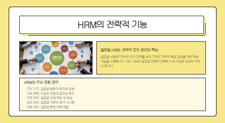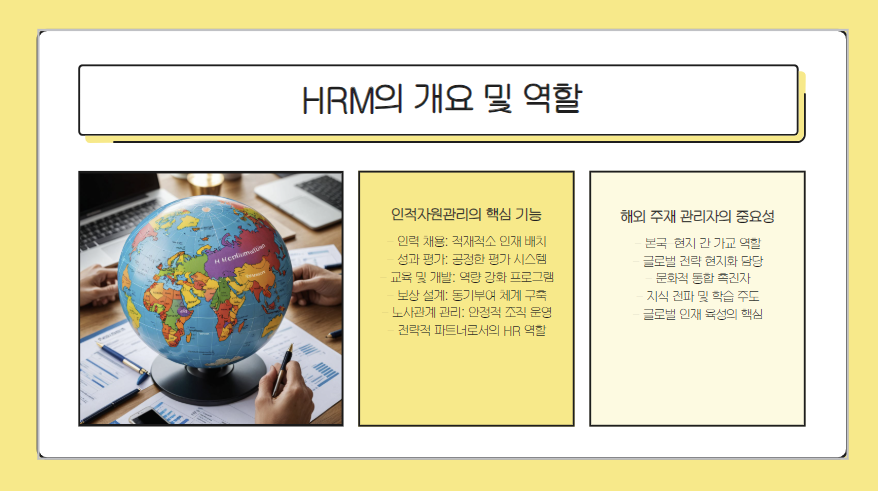 글로벌 HRM은 단순한 행정 기능이 아니라, 조직 구조 전반을 아우르는 전략적 기제입니다.