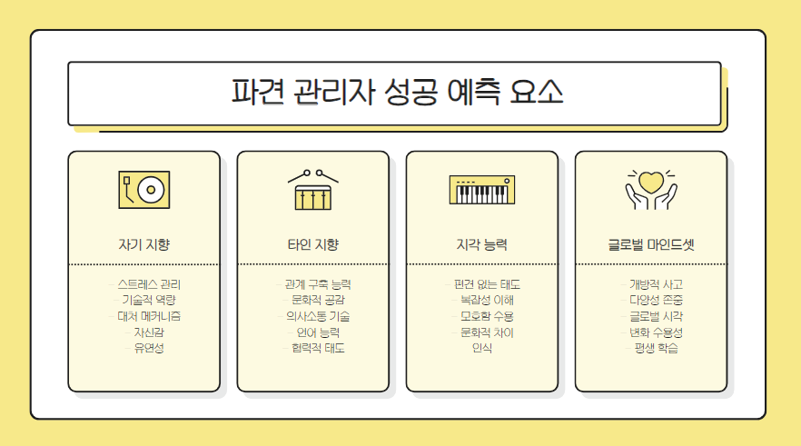 • 글로벌 마인드셋(Global Mindset): 복잡성 수용, 문화 적응력, 열린 사고
