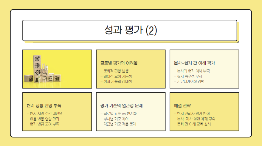 글로벌 환경에서는 공정한 성과 평가가 어려워집니다.