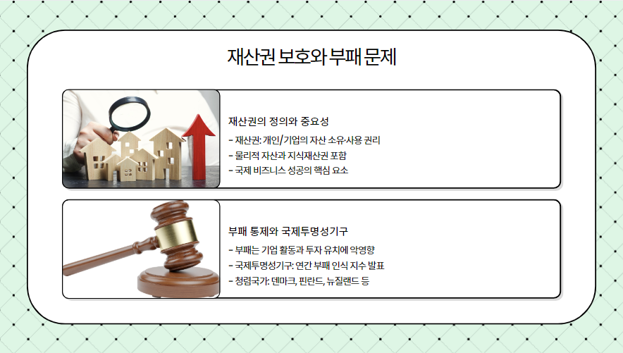 투명한 법률 시스템과 부패 통제는 국제 비즈니스 성공의 핵심 요소입니다.