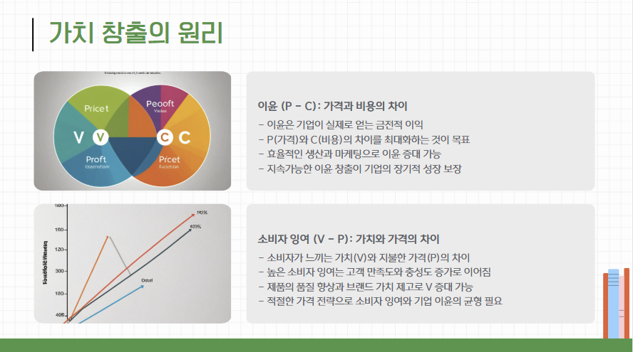 기업이 고객에게 제공하는 제품의 가치(V)와 그것을 생산하는 데 드는 비용(C)의 차이가 클수록 기업은 더 많은 이익을 냅니다.
