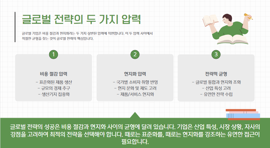 많은 글로벌 기업은 비용 절감과 현지화라는 두 상반된 압력 사이에서 균형을 잡아야 합니다.