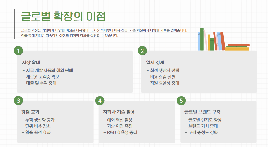 글로벌 확장을 통해 기업은 다음과 같은 이점을 누릴 수 있습니다: